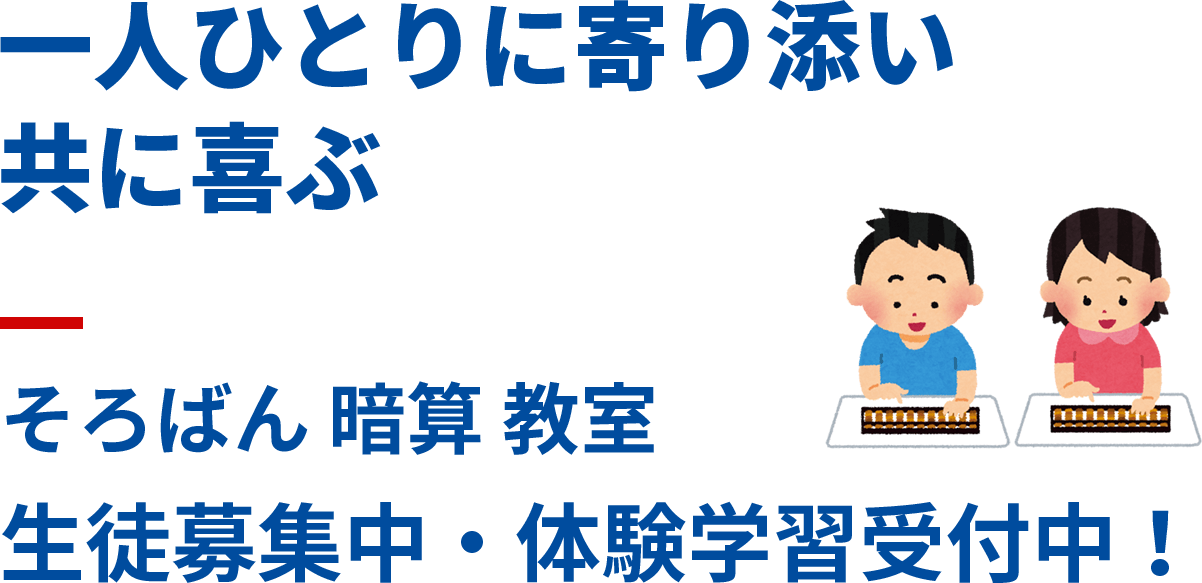 公益社団法人 全国珠算教育連盟 正会員指導教場、一般社団法人 日本珠算連盟 指定教場です。楽しみながら暗算力=右脳力(イメージ力)を養いましょう。幼児・低学年からはじめることで集中力・計算力などの基礎能力が鍛えられます。